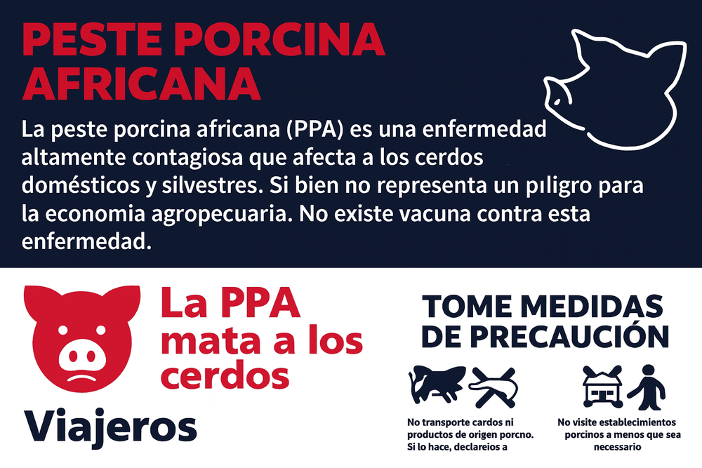 La Peste Porcina Africana (PPA) es una enfermedad viral altamente contagiosa y mortal para los cerdos, tanto domésticos como silvestres. Aunque no afecta a los humanos, su impacto en la producción porcina y en la economía agropecuaria es devastador. Además, no existe vacuna ni tratamiento, por lo que la prevención es fundamental.
